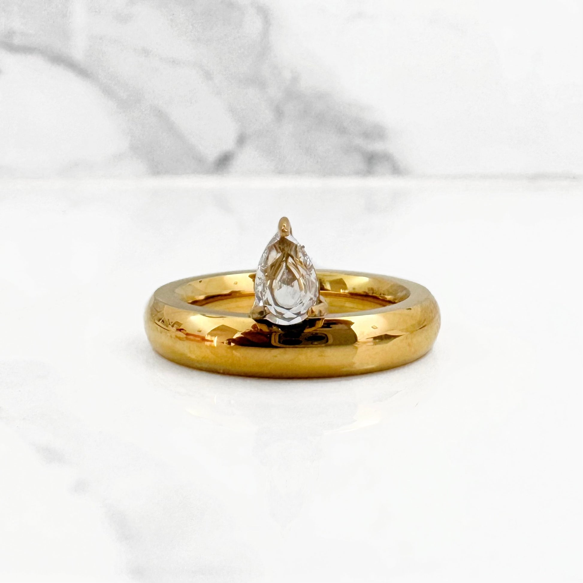 Anillo de Acero Inoxidable y Zirconia en forma de gota.